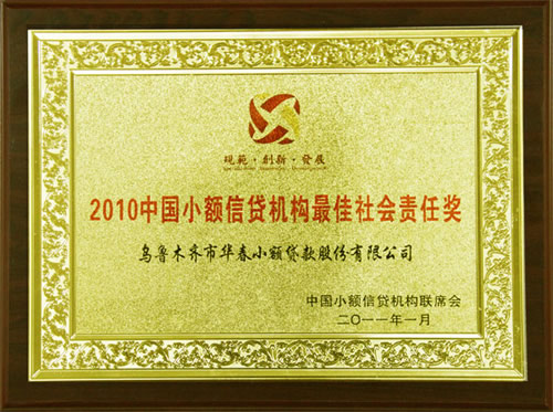 中國首屆小貸優(yōu)秀機(jī)構(gòu)評選揭曉——華春小貸榮獲“2010中國小額信貸機(jī)構(gòu)競爭力100強(qiáng)”、“2010中國小額信貸機(jī)構(gòu)最佳社會責(zé)任獎”