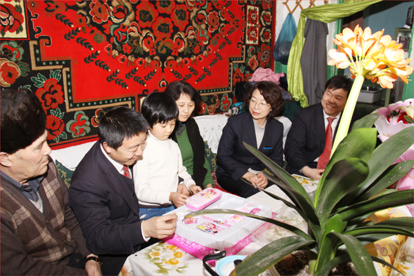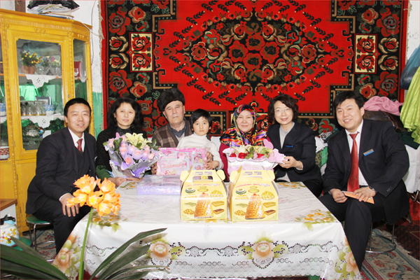 這是在2012年的“三八”國際勞動(dòng)?jì)D女節(jié)到來之際,華春投資集團(tuán)工會(huì)主席高青、工會(huì)委員鄭培君和已故員工阿里木•阿吾東生前所在企業(yè)即華春投資集團(tuán)下屬的新疆華景物業(yè)服務(wù)有限公司的管理人員一行,帶著華春投資集團(tuán)總裁李成功先生和華春全員的深情厚誼,特地前往已故員工阿里木•阿吾東的家,看望慰問了其父母與妻子、孩子,送上鮮花和慰問品,致以誠摯的關(guān)愛之情并送上節(jié)日的祝福,使已故員工的家屬真切感受到了來自華春這個(gè)大家庭的關(guān)懷和溫暖。