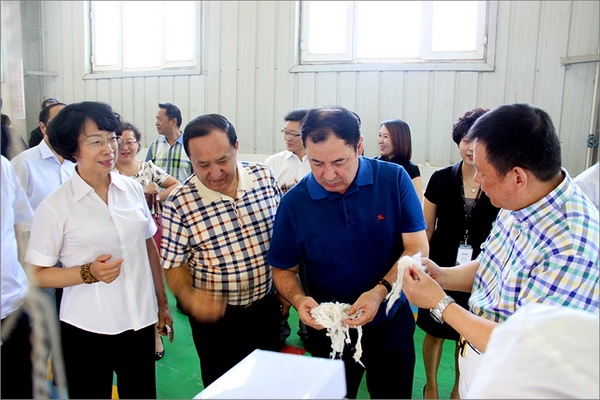 肖開提·依明常委一行首先參觀了新疆華春投資集團下屬的子公司華春毛紡AAA級旅游工業(yè)園區(qū),關心的了解該高檔羊絨加工生產(chǎn)基地的生產(chǎn)經(jīng)營銷售情況。調研過程中當?shù)弥谌蚪?jīng)濟都下滑的形勢下,而華春的高檔羊絨制品出口銷售卻逆勢增長感到非常欣慰。接著,肖開提·依明常委一行來到員工餐廳,了解員工的工作與生活情況,鼓勵員工不斷學習創(chuàng)新,與企業(yè)一同成長。