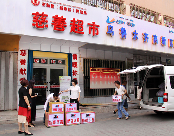 在新疆日漸臨近的寒冷氣候到來之前,新疆華春投資集團副總裁兼工會主席高青攜企業文化中心管理人員一行,代表華春團隊于8月18日將裝滿7箱的羽絨服、毛衣、風衣等衣物,送到烏魯木齊高新區(新市區)慈善超市,由其送與需要救助的社會困難群眾、弱勢群體手中,使他們感受到社會的溫曖。高新區(新市區)民政局辦公室武主任和慈善超市的工作人員,對華春集團關注民生奉獻愛心的善舉表示誠摯的感謝。