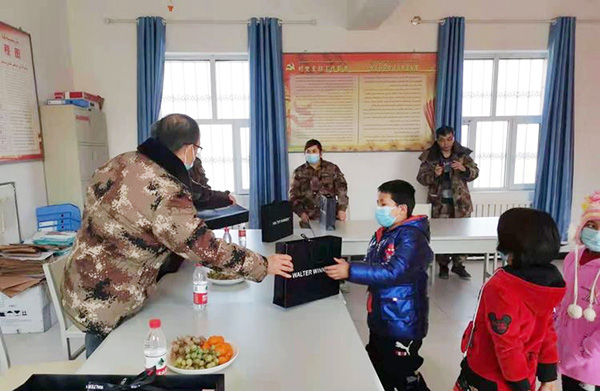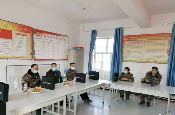 為進(jìn)一步履行企業(yè)社會責(zé)任,助力新疆社會穩(wěn)定和長治久安總目標(biāo),在2021牛年新春佳節(jié)即將到來的2月4日,新疆華春集團(tuán)董事局主席兼總裁李成功委托副總裁馬生忠、行政辦主任劉星一行,專程赴喀什地區(qū)看望慰問自治區(qū)人民政府辦公廳駐疏勒縣阿拉力鄉(xiāng)闊納喬喀村工作隊(duì),為工作隊(duì)員帶來了肉類、新鮮蔬菜、水果等生活物資及消毒液、酒精等防疫物資,并為當(dāng)?shù)卮迕袼蜏嘏栀浟藘r值4萬余元的羊絨衫。
