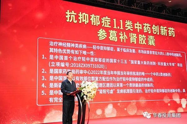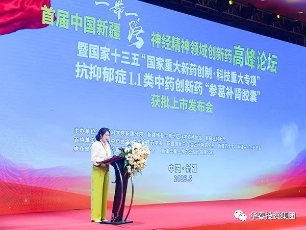 論壇會(huì)上進(jìn)行了重大科技成果發(fā)布,由新疆華春生物藥業(yè)股份有限公司(簡(jiǎn)稱:華春藥業(yè))與清華大學(xué)生命科學(xué)學(xué)院聯(lián)合研發(fā)、被定為國(guó)家十三五“國(guó)家重大新藥創(chuàng)制•科技重大專項(xiàng)”抗抑郁癥1.1類中藥創(chuàng)新藥“參葛補(bǔ)腎膠囊”獲批上市。