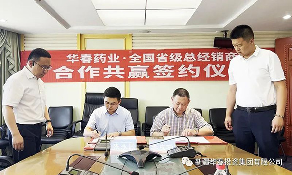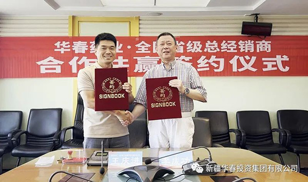 新疆華春生物藥業(yè)股份有限公司(簡稱華春生物藥業(yè))與第二批全國省級總經(jīng)銷商合作協(xié)議簽署儀式,于8月24日在新疆華春投資集團舉行。新疆華春投資集團董事局主席兼總裁、華春生物藥業(yè)董事長李成功先生,分別與江蘇龘龍醫(yī)藥科技有限公司研發(fā)負責人張永昌(江蘇省代)、北京麥爾信康科技發(fā)展有限公司總經(jīng)理王慶進(北京省代)、河北思平生物醫(yī)藥科技有限公司總經(jīng)理高春雨(河北省代),簽訂了《“參葛補腎膠囊”推廣服務協(xié)議暨省級總經(jīng)銷協(xié)議》。華春生物藥業(yè)相關技術與管理人員參加簽署儀式。