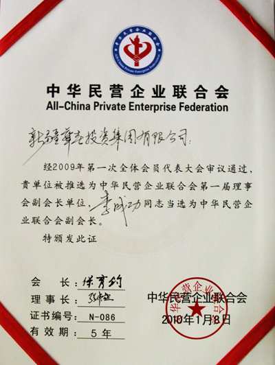 于新一年的1月底在北京召開的中華民營企業(yè)聯(lián)合會年會和中國民營科技實業(yè)家協(xié)會2010年新春團拜會上,總裁李成功先生分別當選為中華民營企業(yè)聯(lián)合會副會長和中國民營科技實業(yè)家協(xié)會副理事長,華春投資集團成為中華民營企業(yè)聯(lián)合會副會長單位。同時,華春投資集團還在由中國品牌發(fā)展組織委員會舉辦的評選活動中榮獲2009中國品牌社會責任貢獻獎,總裁李成功先生被授予2009中國品牌創(chuàng)新人物稱號。