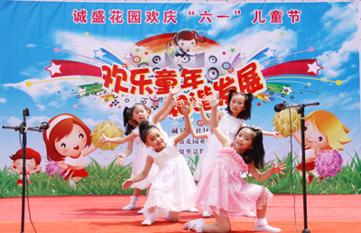 誠盛花園寶貝幼稚園的小朋友和專業演職人員同臺獻藝,小演員的舞蹈、時裝秀、朗誦、算術技能、器樂等天真爛漫的表演,令人開懷,華景物業公司為小朋友發放了節日禮品。