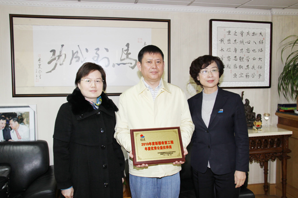 新疆維吾爾自治區團委青少年發展基金會副秘書長趙艷紅一行,于3月25日專程前往新疆華春投資集團總部,代表自治區青少年發展基金會將“2010年度新疆希望工程優秀公益伙伴獎”榮譽牌匾授予新疆華春投資集團,以表彰新疆華春投資集團為發展社會公益事業作出的卓越貢獻,李成功總裁代表集團接受了獎牌。