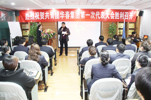 共青團華春集團第一次代表大會于2011年12月3日在恒潤公司培訓室勝利召開,大會由胡梅同志主持,此次會議正式代表、領導及嘉賓共計60余人出席會議,高新區(新市區)團委副書記張新平同志、集團黨委書記嚴天利同志、集團黨委統戰部部長兼機關黨支部書記秦維華同志、華春毛紡黨支部書記郭鵬宏同志、恒潤公司黨支部書記孫業傳同志、華春商貿公司黨支部書記孫佳梅同志、團支部書記李卓軒同志出席大會開閉幕式。