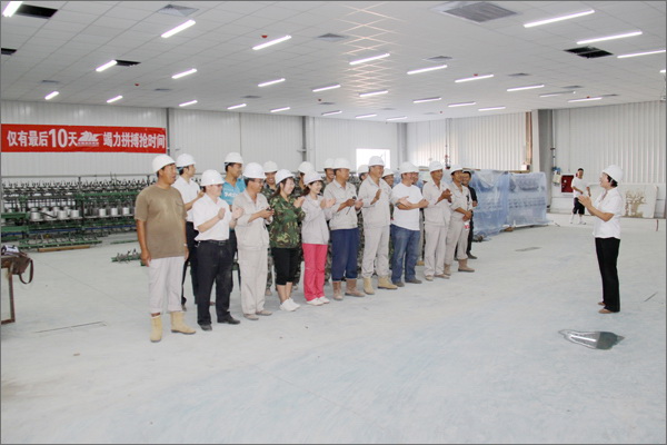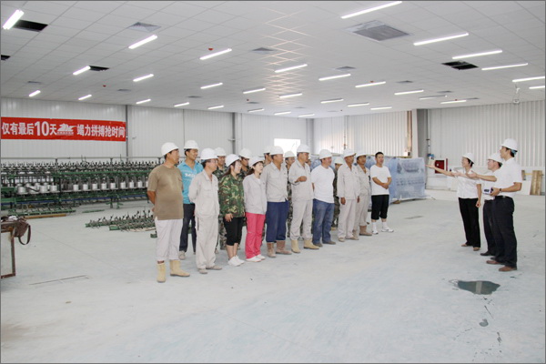 8月20日,距華春毛紡工業(yè)園項(xiàng)目整體竣工要求的日期只有最后的10天,新疆華春投資集團(tuán)工會(huì)主席高青攜編輯部全員前往五家渠毛紡工業(yè)園項(xiàng)目建設(shè)工地,號(hào)召項(xiàng)目現(xiàn)場(chǎng)第一線的人員們“僅有最后10天   竭力拼搏搶時(shí)間”!在充分肯定了所有一線人員努力奮戰(zhàn)的同時(shí),希望大家繼續(xù)發(fā)揚(yáng)工人階級(jí)主人翁的精神,毛紡工業(yè)園項(xiàng)目工程已經(jīng)進(jìn)入最后的沖刺攻堅(jiān)階段,在保證施工安全的前提下,保質(zhì)量、搶時(shí)間、抓進(jìn)度,一刻不放松、一天不耽誤,不辜負(fù)華春全員和李成功總裁的期望,早日建成華春毛紡工業(yè)園,給所有關(guān)心和支持此項(xiàng)目的社會(huì)各界,交出一份滿意的答卷。
