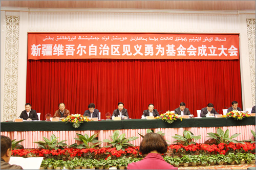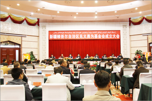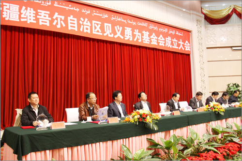 自治區黨委、政府高度重視見義勇為基金會的成立,自治區主席努爾•白克力為基金會名譽會長,自治區黨委常委、政法委書記熊選國和自治區副主席、公安廳廳長朱昌杰為基金會名譽副會長,原自治區人大常委會副主任張國梁擔任基金會理事長。自治區黨政各部門領導參加了大會,會議由自治區黨委副秘書長、政法委常務副書記郭永輝主持。