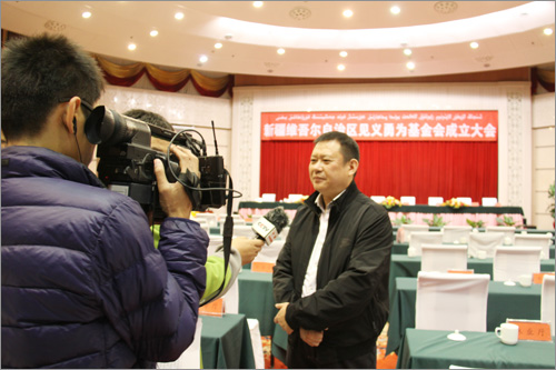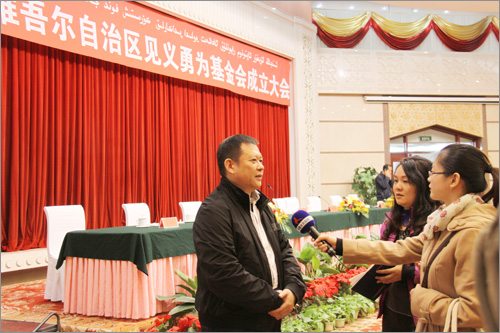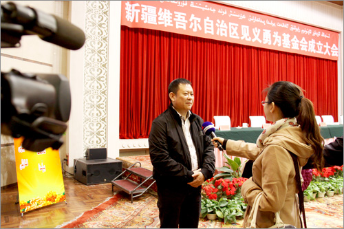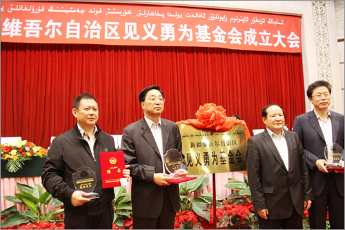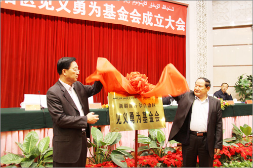 和新疆見義勇為基金會首屆理事長張國梁為基金會揭牌