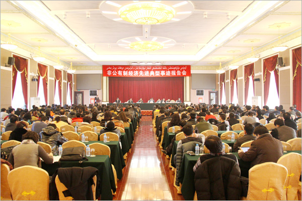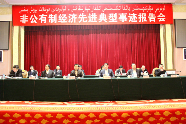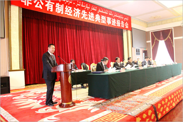 新疆隆重召開非公有制經(jīng)濟(jì)先進(jìn)典型事跡報告會--新疆華春集團(tuán)有限公司李成功總裁在會上報告先進(jìn)典型事跡