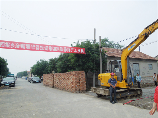 6月19日,風(fēng)和日麗,晴空萬里,華春集團(tuán)總裁李成功先生捐款200萬元修路開工儀式在壽光市雙城生態(tài)園區(qū)南木橋村舉行。李總裁的母親大人、三弟李榮獻(xiàn)、總助李榮貴、集團(tuán)審計(jì)部副部長(zhǎng)沈其明及壽光市政法委、公積金中心、雙城生態(tài)園區(qū)等領(lǐng)導(dǎo)和部分村民代表約50余人參加了捐款修路儀式。