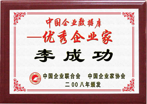 “中國企業數據庫--優秀企業家”入庫證書