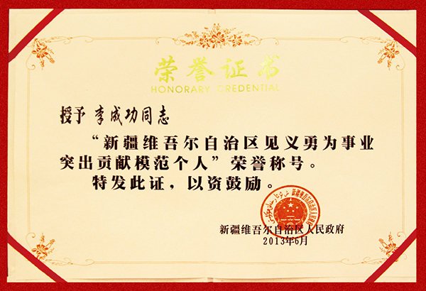 新疆維吾爾自治區見義勇為事業突出貢獻模范個人